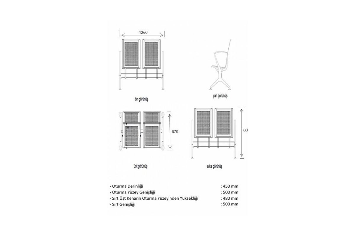 | Chrom Bekleme Koltuğu | İkili Kollu Döşemesiz |