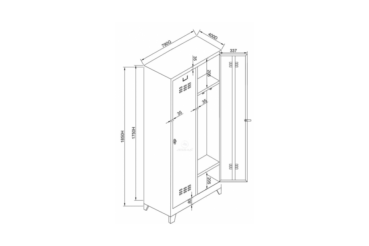 | 2 li Standart Soyunma Dolabı Gri | Boyutları: Genişlik:79cm Derinlik: 40cm Yükseklik: 185cm Ürün Özelliği: Havalandırma Izgaraları, İsimlik, Plastik askı kancaları, Pim Menteşe, Asma kilit takmaya uygun kilit sistemi. |