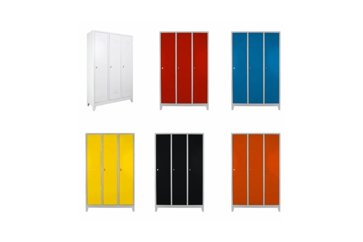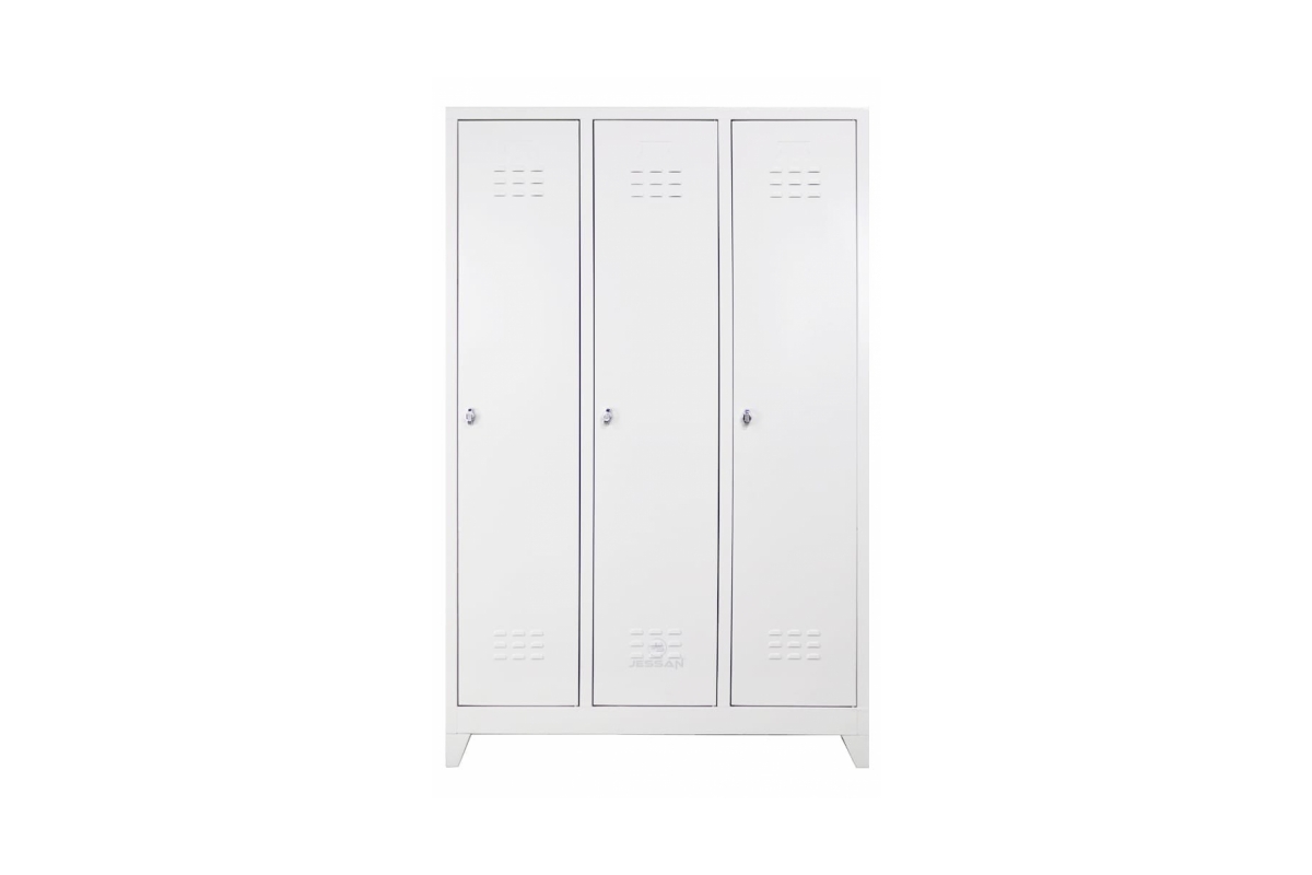 | 3 lü Standart Soyunma Dolabı Gri | Boyutları: Genişlik:117cm Derinlik: 40cm Yükseklik: 185cm Ürün Özelliği: Havalandırma Izgaraları, İsimlik, Plastik askı kancaları, Pim Menteşe, Asma kilit takmaya uygun kilit sistemi. |