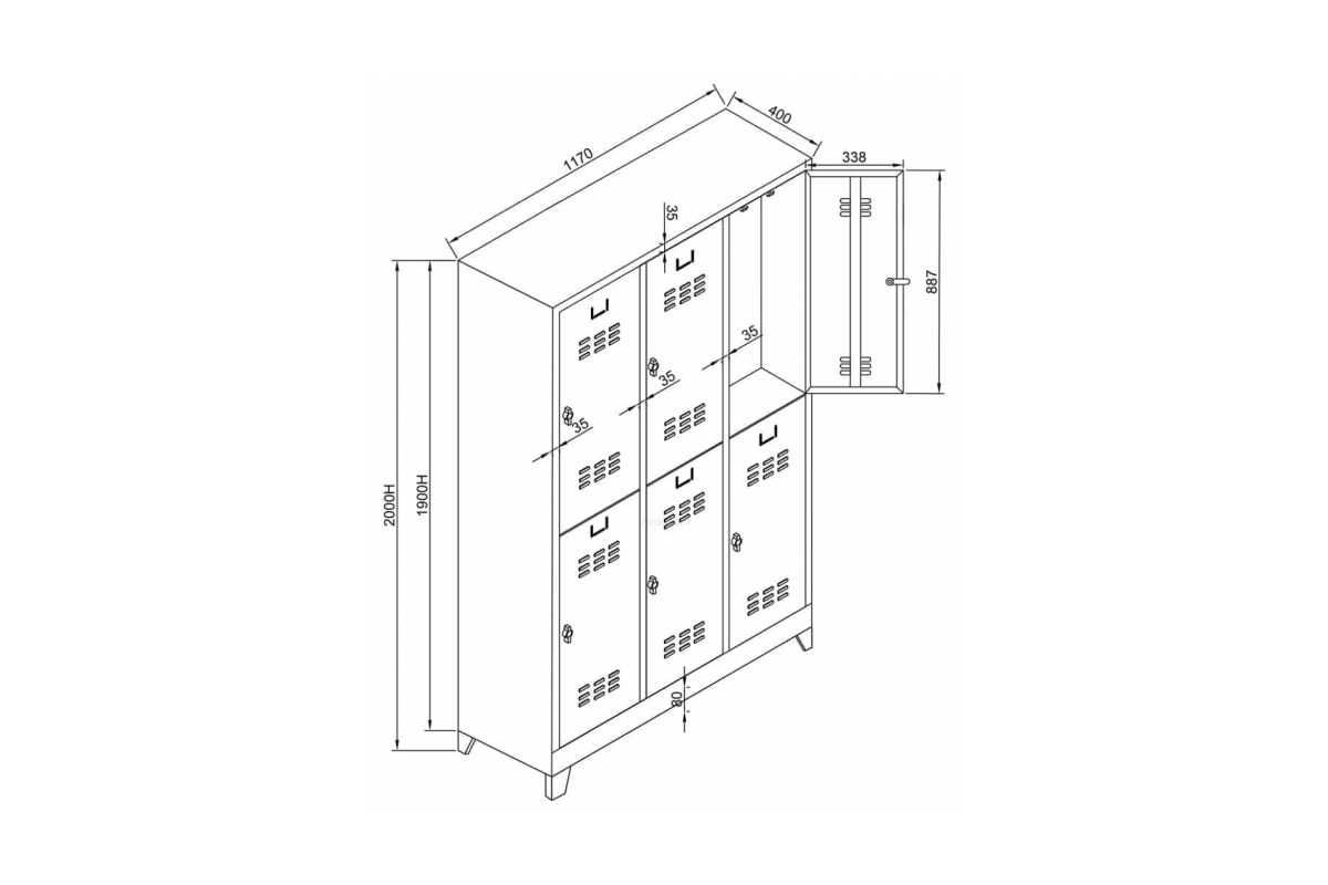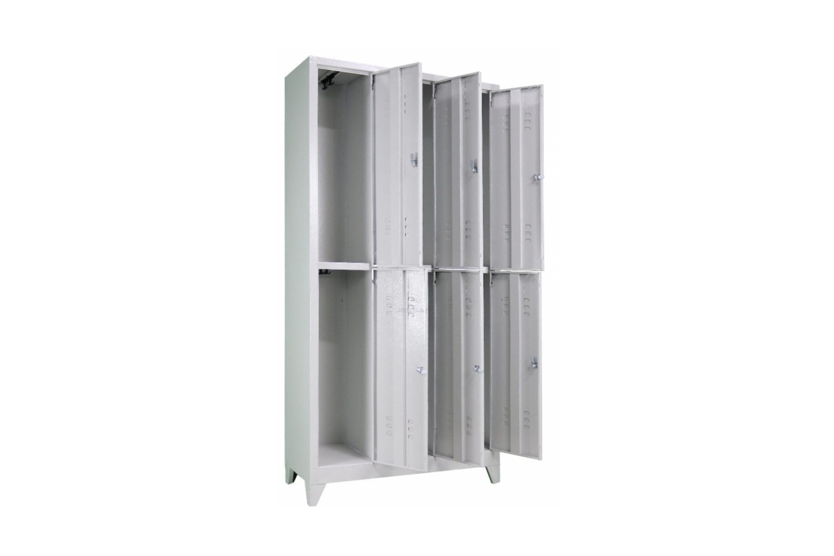 | 6 Lı Standart Soyunma Dolabı Gri | Boyutları: Genişlik:117cm Derinlik: 40cm Yükseklik: 200cm Ürün Özelliği: Havalandırma Izgaraları, İsimlik, Plastik askı kancaları, Pim Menteşe, Asma kilit takmaya uygun kilit sistemi. |